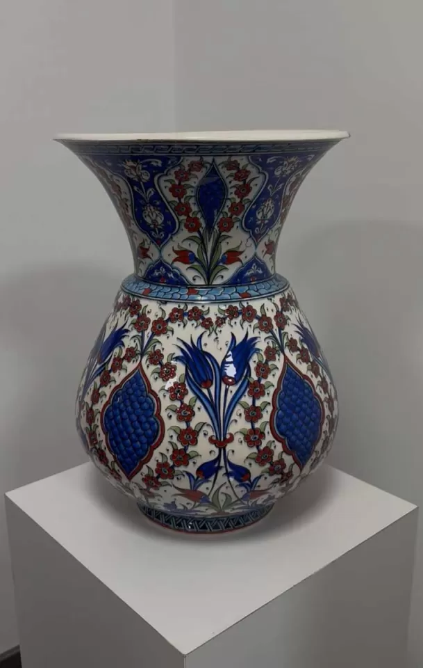 Temizlik: Seramik yüzeyin ve üzerindeki detayların parlaklığını korumak için sadece yumuşak, kuru bir toz alma püskülü veya hafif nemli bir bez kullanın. Kimyasal temizleyiciler sır tabakasına zarar verebilir.